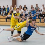 Schon der Start war von beiden Seiten in einer sehr guten Verbandsliga-Partie für die Zuschauer sehr unterhaltsam, denn beide Teams schenkten sich nichts und ließen auch tolle handballerische Aktionen einfließen. Erst nach dem 5:6 (11.) durch TuS-Linksaußen Max Hirtz konnte sich Knielingen mehr Vorteile erspielen durch erfolgreich zu Ende gespielten Angriffe, als die Gelb-Schwarzen erfolgreich einnetzten. Nach dem 6:10 (15.) als Rückraum-Shooter Philipp Reither traf, reagierte TuS-Coach Nikolai Wagner mit einer Auszeit. Doch Knielingen war so im Spielfluss, dass sie auch danach weiter davonzogen und ihre Führung gar auf 7:13 (19.) ausbauten. Der TuS konnte zwar wieder auf 10:13 etwas herankommen, doch der TVK hatte im Angriff mehr Überzeugung, während bei den Gastgebern die Abwehr nicht so sattelfest stand. Schließlich nahm die Mannschaft des Gäste-Trainerteams Bennjamin Borrmann und Marc Sautter eine verdiente 11:17 Führung mit in die Halbzeit.